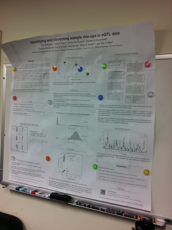 I’m preparing my first large-format poster (for the MathBio3 conference, here in Madison in two weeks). Previously, my posters had just been on a series of pieces of regular paper. (Consider, for example, this poster from September, 1998.) But no one does that anymore, and I don’t want to stand out as being archaic. That is, I want to pretend to be modern.