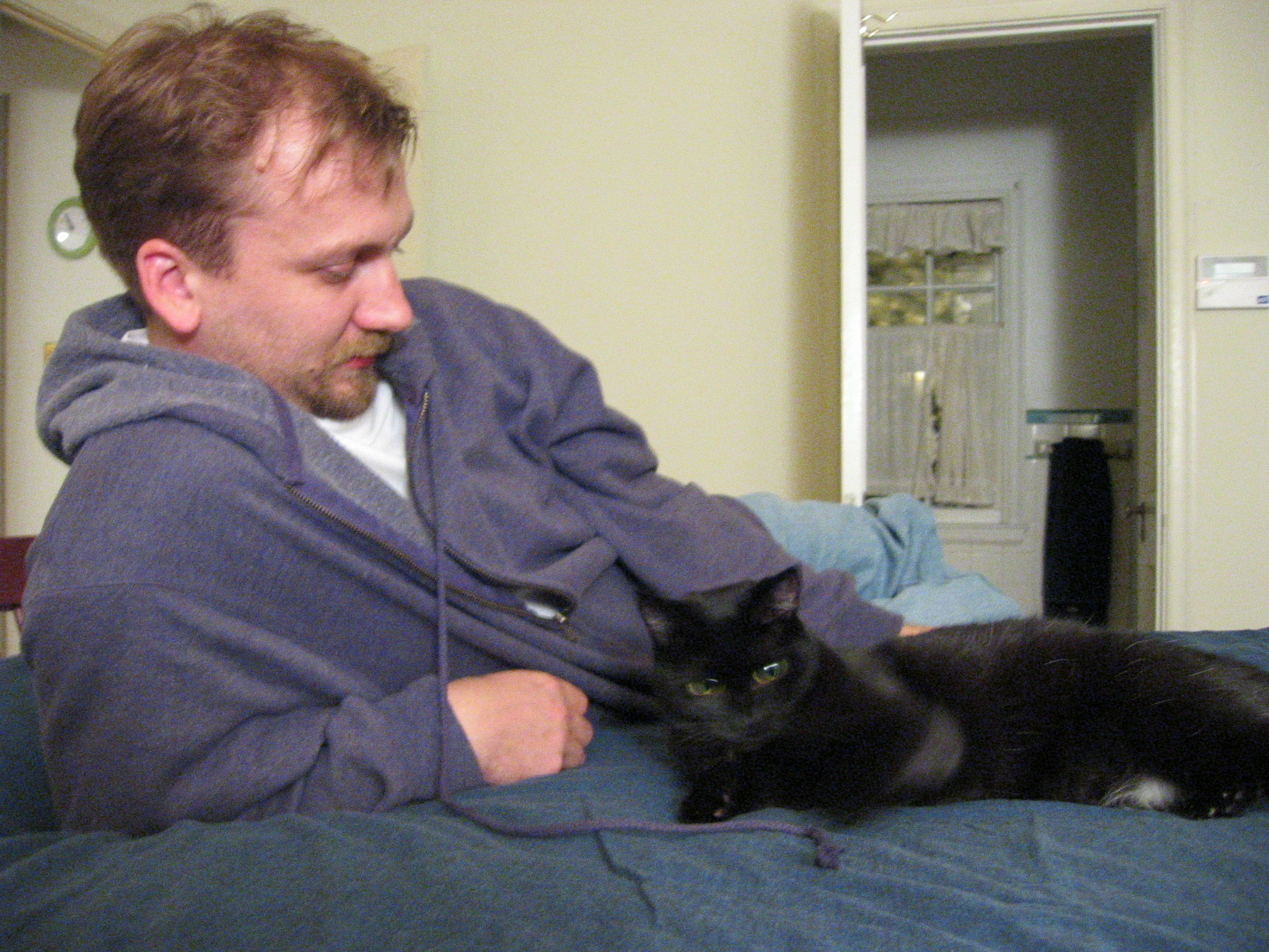 Karl with a Van Dyke beard (playing with Francis), 10 Nov 2002